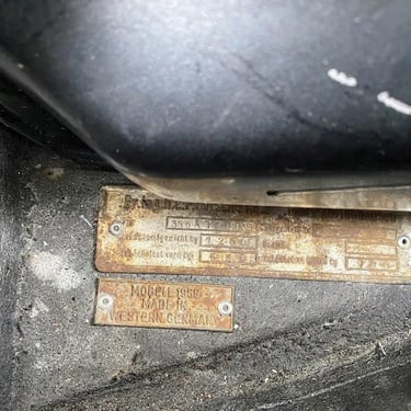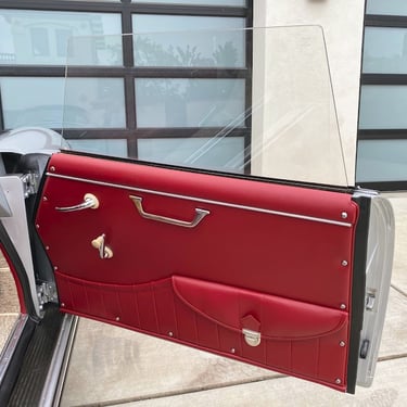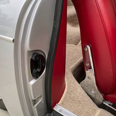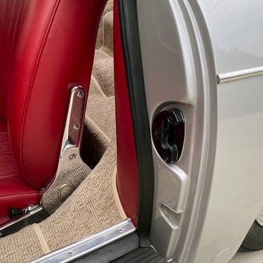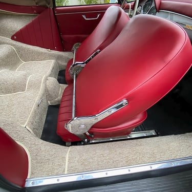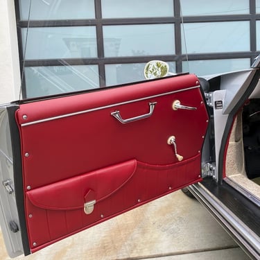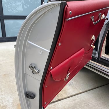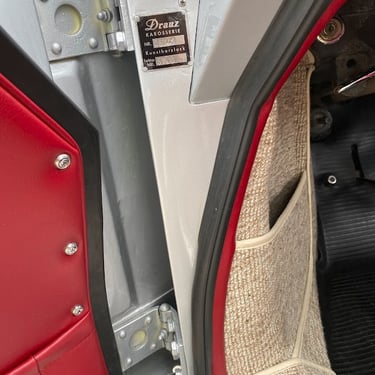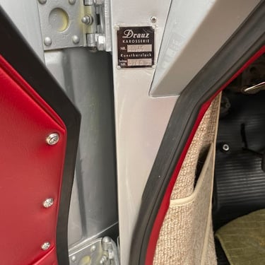 This Convertible D (#85741) is the 240th produced by coachbuilder Drauz out of a total production of 1331 vehicles in 1959. This D retains it's original factory numbers-matching super engine and gear box. The doors, hood and engine lid are each factory stamped with the last digits of the car's VIN. The D is finished in it's factory combination of silver over a red interior.