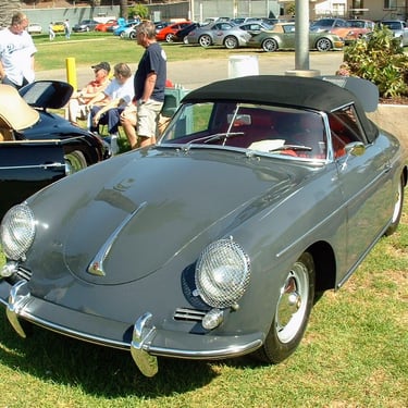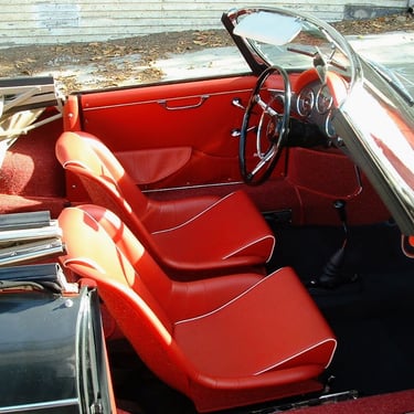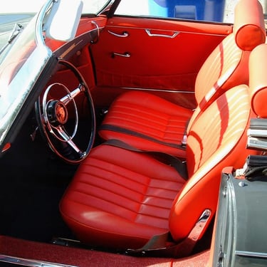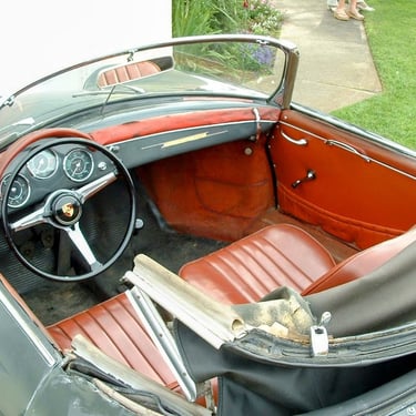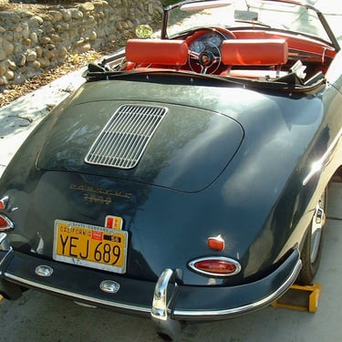 This 1961 Roadster was discovered in a garage outside of Chicago. The first photo in the gallery shows the Roadster with it's original owner shortly after her purchase. The car remained with her until my acquisition in 2005. As a D'Ieteren bodied car, this was the first Porsche built outside of Germany. The car had a hard life, with rust throughout the lower panels. Since it was a matching numbers, factory super, finished in slate gray/red, it made the preservation worthwhile. I removed and replaced all rusted metal and blended the paint where necessary. The Roadster was driven to many California events, including the All German car shows in Ventura, and Rennsport IV in Monterey. Never fully restored, the Roadster was a great driver.